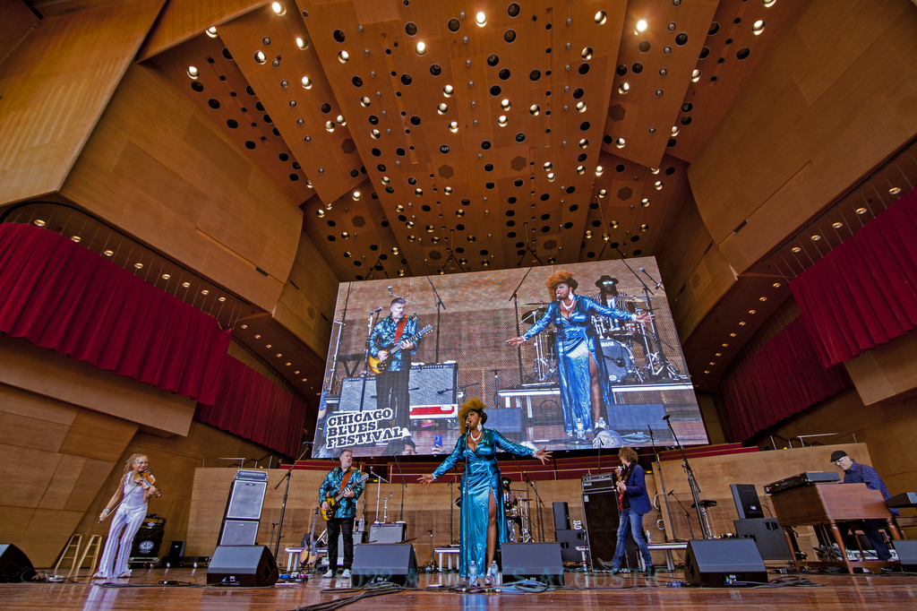 Annika Chambers performing at the 2019 Windy City Blues Festival